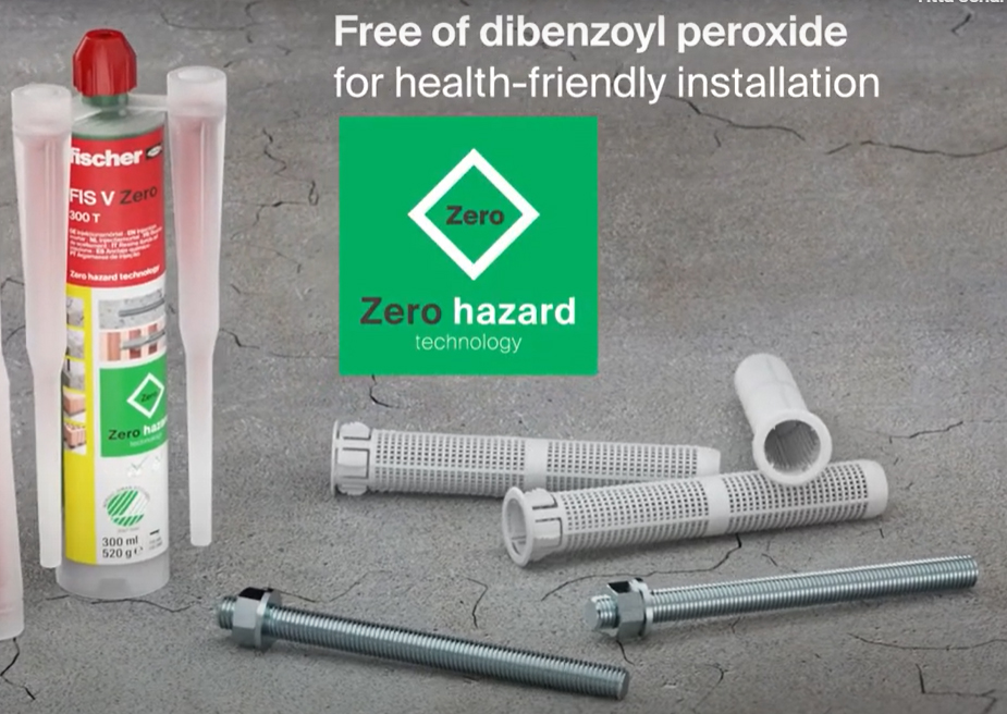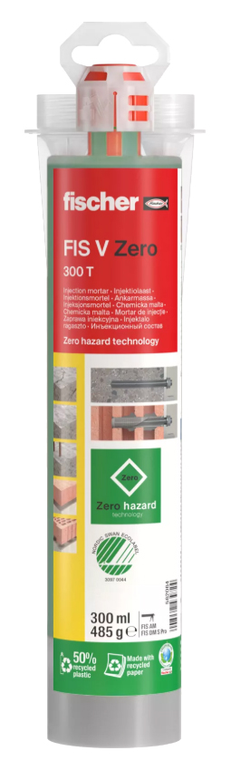 FIS V Zero är godkänd för infästningar i både sprucken och icke sprucken betong, tegel samt för armeringsjärn.