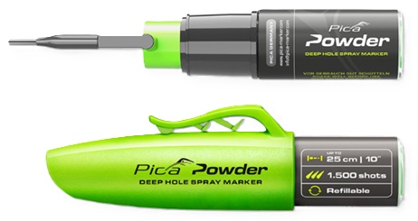 Pica Powder möjliggör exakt och snabb markering genom borrhål upp till 250 mm djupa.