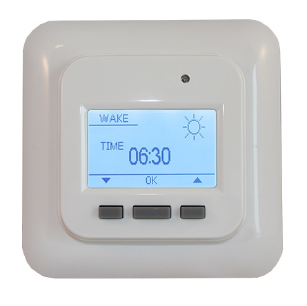 HC71 Digital termostat med ELKO ram är en programmerbar termostat med lättläst digital skärm med möjlighet att sänka temperaturen på natten, vilket sparar energi. Upplyst display vid drift som är lätt att läsa av. Den första visningen visar: tid, veckodag, temperatur, driftsläge och undermeny. Konstruerad med specifik hänsyn till funktionalitet i den senaste EcoDesign-lagstiftningen för energioptimerad drift. HC71 är intelligent, självlärande och kan programmeras i 1, 2 eller 7 händelser med adaptiv och "öppna fönster" -funktion. Den adaptiv funktion garanterar rätt inställd temperatur vid önskad tidpunkt och "öppna fönster" -funktion vilken säkerställer att termostaten inte värmer i onödigt när ett fönster lämnas öppet under en längre tid. HC71 kan kontrollera på 3 olika sätt: golvsensor ensam, rumsgivare ensam eller rum- och golvsensor i kombination. HC71 innehåller också en inbyggd temperaturbegränsare så att temperaturen på golvet aldrig överstiger 27°C. Denna temperaturgräns är en rekommendation från tillverkarna av trä, parkett och laminatgolv.