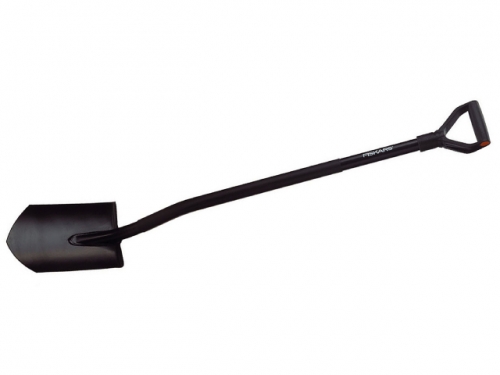 Spetsig spade med förstärkt skaft och ergonomiskt plasthandtag. För grävning av stenig jord, lera, rötter och grästorv. Bladets bredd 195 mm. Säljes per st (Hel förp.=3).
