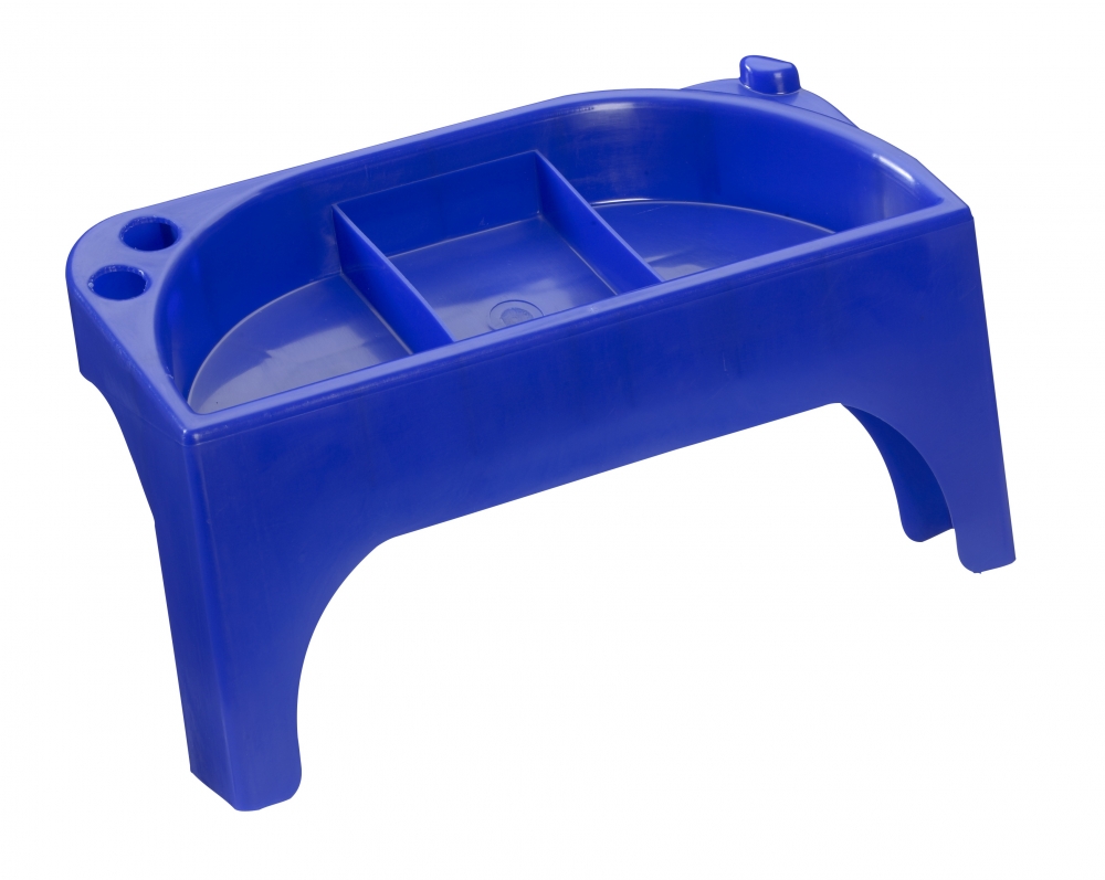 Steghylla. Wibe. Praktisk hylla till Wibes stege 2000, med 3 - 7 steg. 3st fack för tillbehör, 7st verktygshållare samt 2st skåror för att hänga hinkar eller redskap. Färg: Blå. Mått LxB: 285x110mm.