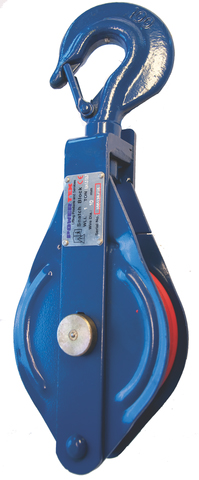 Kastblock för allmänna lyftändamål. Kan även användas för drag. Max last: 1500 kg. Max tråd Ø 13 mm. Skivans Ø 125 mm.