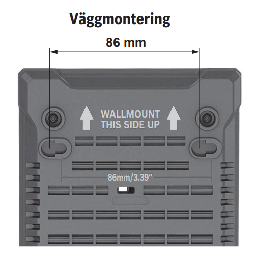 Montering mot vägg: Borra upp 2 hål med ett avstånd på 86 mm.