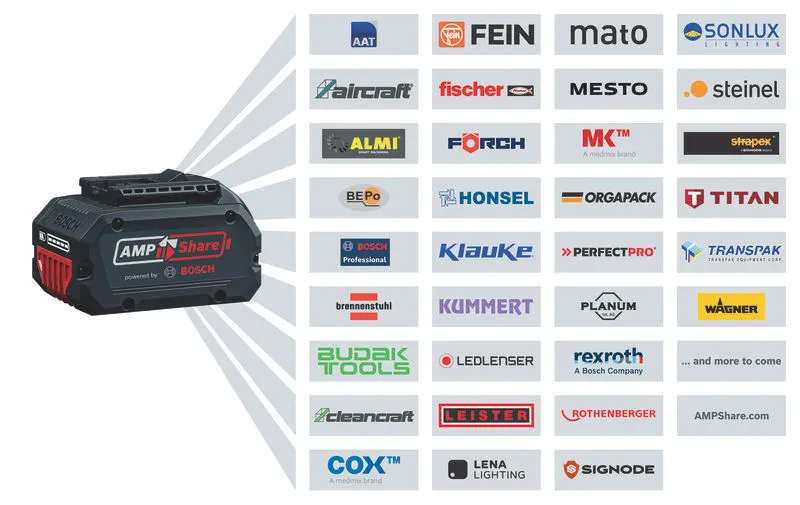 Även AMPShare-kompatibel batterisamarbetet mellan flera varumärken.