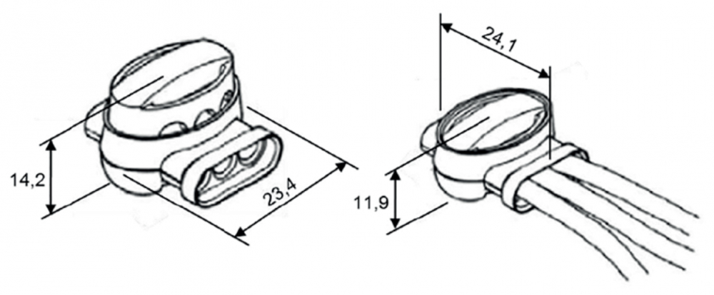 Tillhandahåller en fuktbeständig, flamhämmande elektrisk anslutning för två eller tre trådändar.