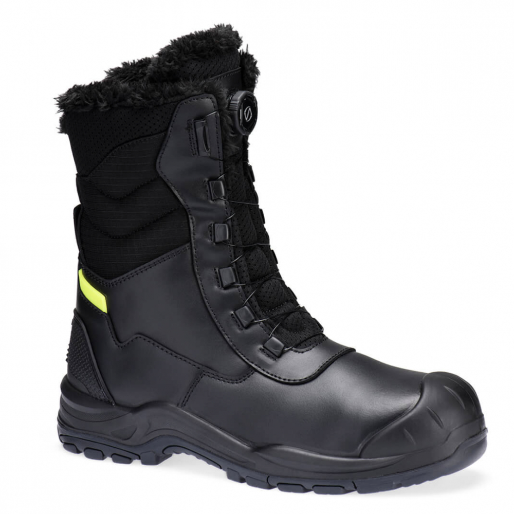 Fodrad skyddskänga med högt skaft. Varmt pälsfoder som klarar ned till -30ºC och ett snörningssystem som kan dras åt eller lossas med en handskbeklädd hand. TPU-hälkappa för skydd och stabilitet. Yttersula i nitrilgummi för bra grepp på halt underlag.