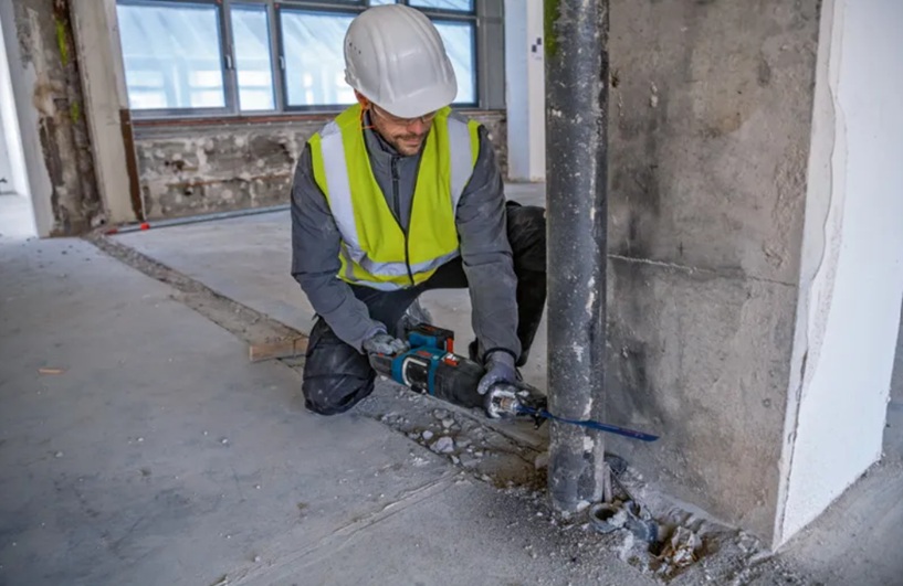 Sladdlös tigersåg utformad för sågning nära väggar i uppochnedvänd ställning.